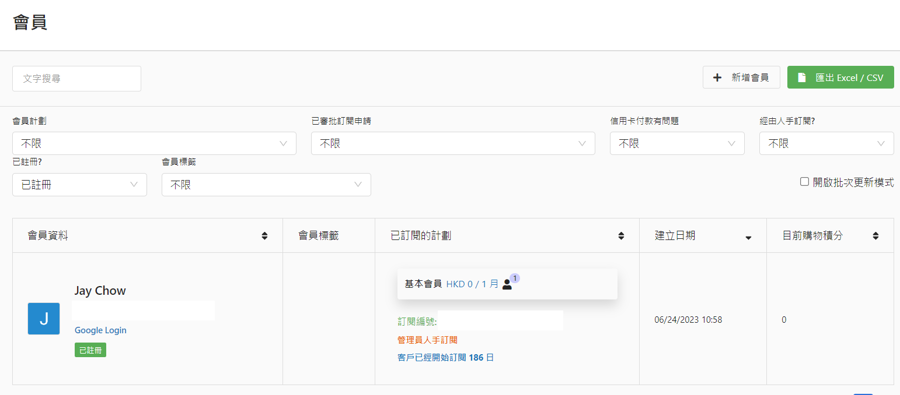 Export to Excel/CSV Function: For creators requiring data analysis or external marketing activities, Rakosell also offers the ability to export member data as Excel or CSV files. This not only enhances data management convenience but also provides creators with more flexibility, allowing them to use this data on other platforms or tools.