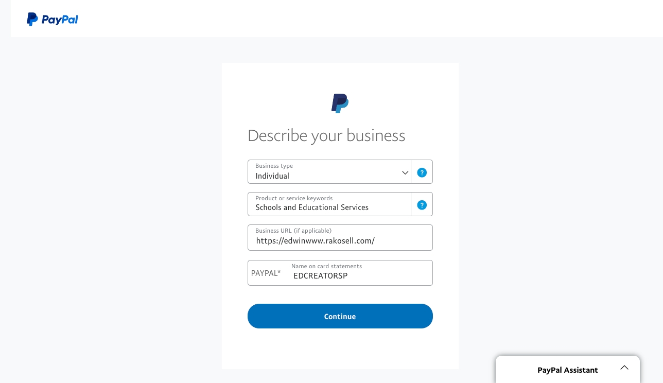Provide business information; for individual applications, you need to provide your ID number and phone number for verification. It's recommended to use a new phone number that hasn't been registered on PayPal before. For the business name, consider using your channel/website name. If you have a Rakosell website, you can use that or fill in as necessary.