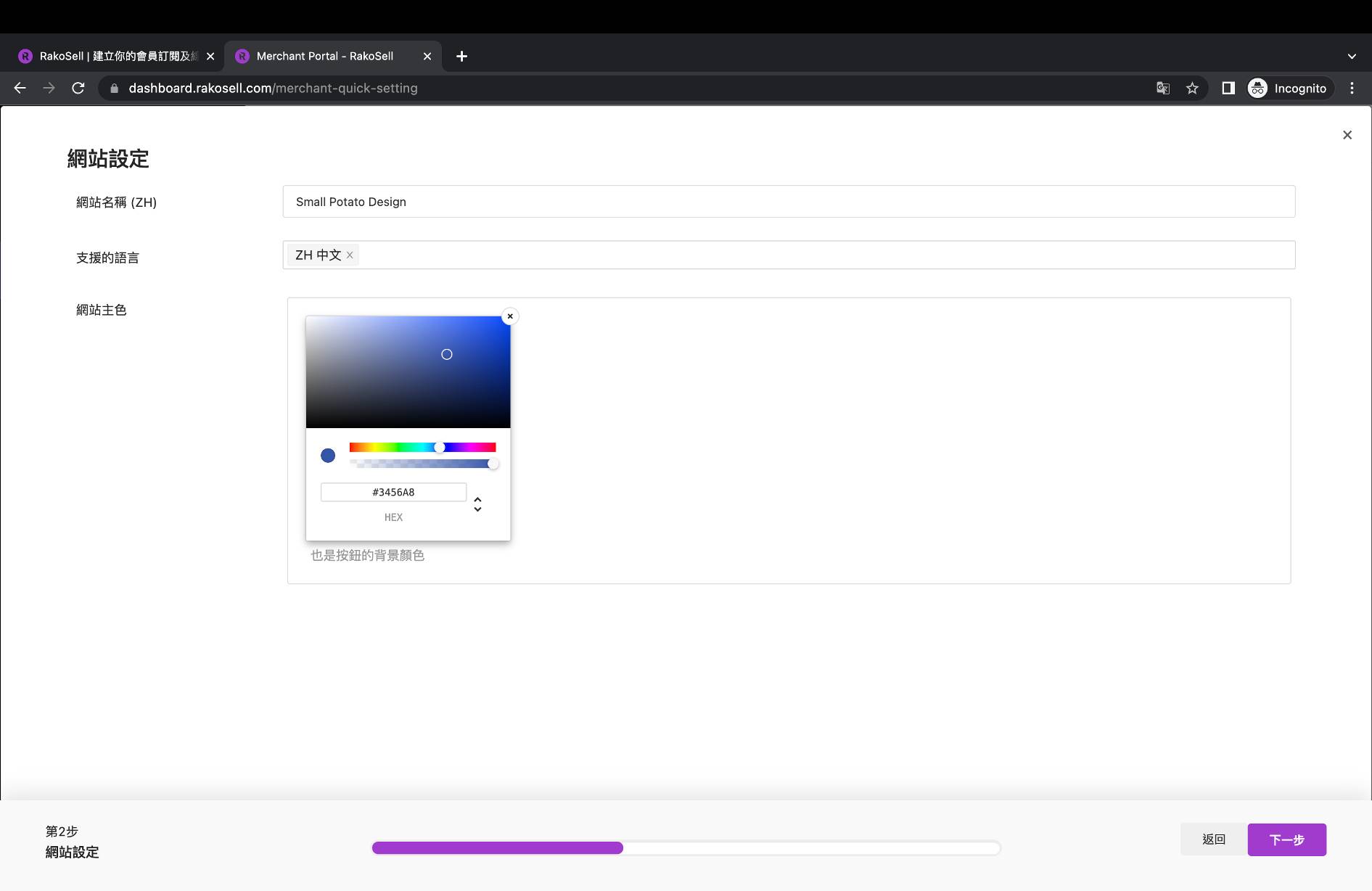 * 接着是網頁設定，你可以填寫你的網站名稱、支援語言及主題顏色。然後你可以填寫有關你的個人介紹，讓大眾知道你的背景及工作。