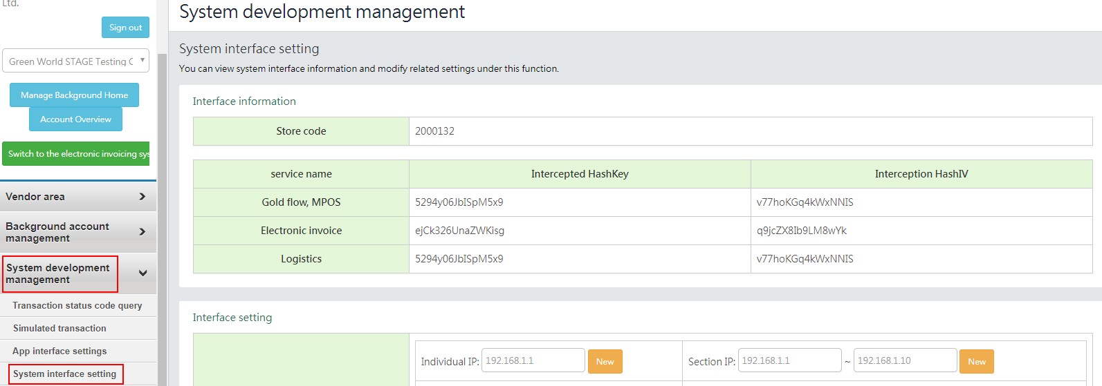 請登入: 廠商後台( <https://vendor.ecpay.com.tw/>) → 系統開發管理 → 系統介接設定