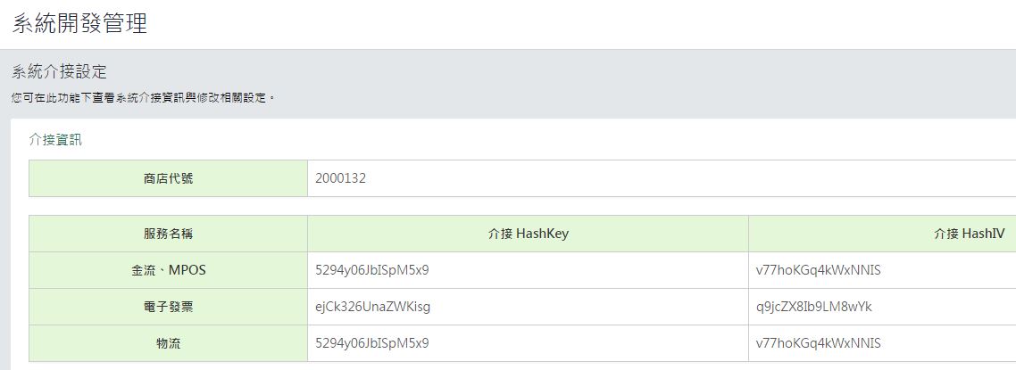 金流的MerchantID及HashKey、HashIV的取得方法: