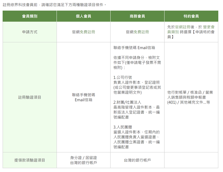 上述流程申請通過後，您的綠界會員身份為綠界科技的「一般會員」（個人會員/商務會員）。