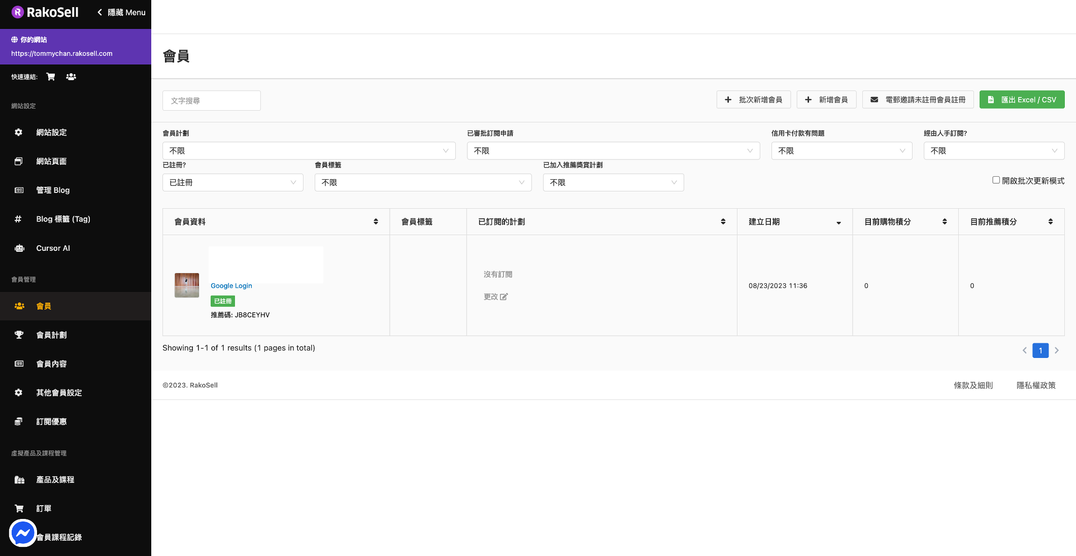 * 回到你的網站後台，可以點擊對應的會員，在&#x5176;**「會員資料」頁**中的下方，修改為該會員提供的推薦碼及優惠內容。優惠標題、優惠百分比折扣、優惠碼都可以獨立再作修改，此修改只會改變此會員所得的推薦碼及其內容，不會影響其他人及新加入的人。