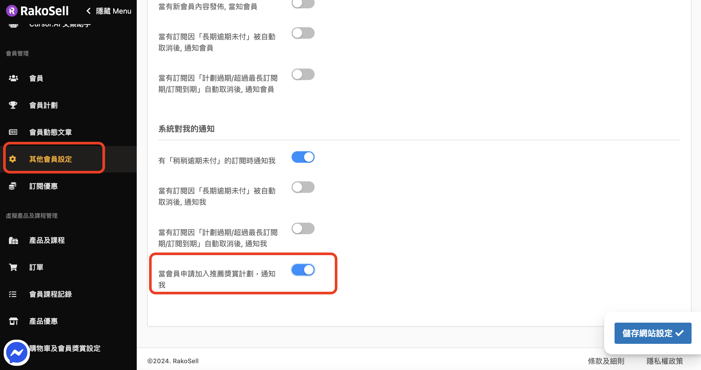 * 在左方打&#x958B;**「其他會員設定」**&#x9801;面，下方開&#x555F;**「申請加入推薦獎賞計劃」**&#x6B04;。那麼你的會員便可以申請加入推薦計劃了！你亦可以在「其他會員設定中」，勾選通訊，這樣每次有新的會員加入聯盟營銷，你就會收到電郵通知。